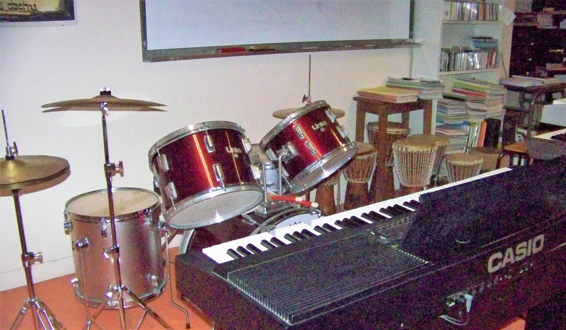 In the classroom there are musics instruments.